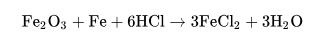 鹽酸一個最重要的用途是酸洗鋼材。在后續處理鐵或鋼材(擠壓、軋制、鍍鋅等)之前,可用鹽酸反應掉表面的銹或鐵氧化物。通常使用濃度為18%的鹽酸溶液作為酸洗劑來清洗碳鋼: