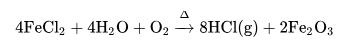 酸洗鋼材工業發展了鹽酸再生工藝,如噴霧焙燒爐或流化床鹽酸再生工藝等。這些工藝能讓氯化氫氣體從酸洗液中再生。其中最常見的是高溫水解工藝,其反應方程式如下: