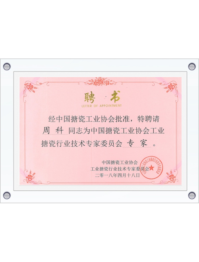 上一篇:中國搪瓷工業協會工業搪瓷專家聘書