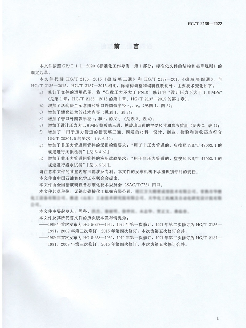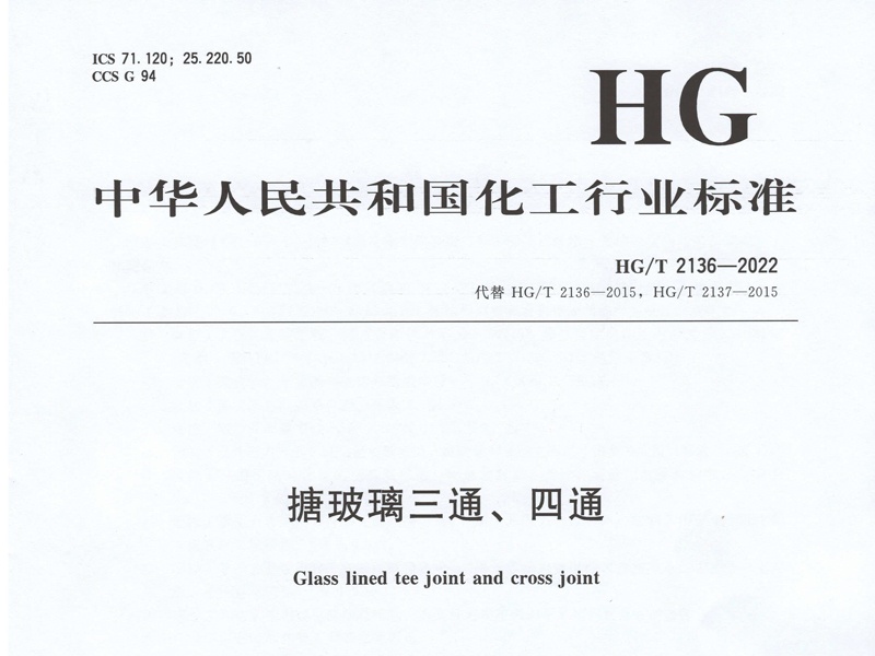 中華人民共和國化工行業標準HG/T 2136-2022搪玻璃三通四通 點擊下載搪玻璃三通四通行業標準