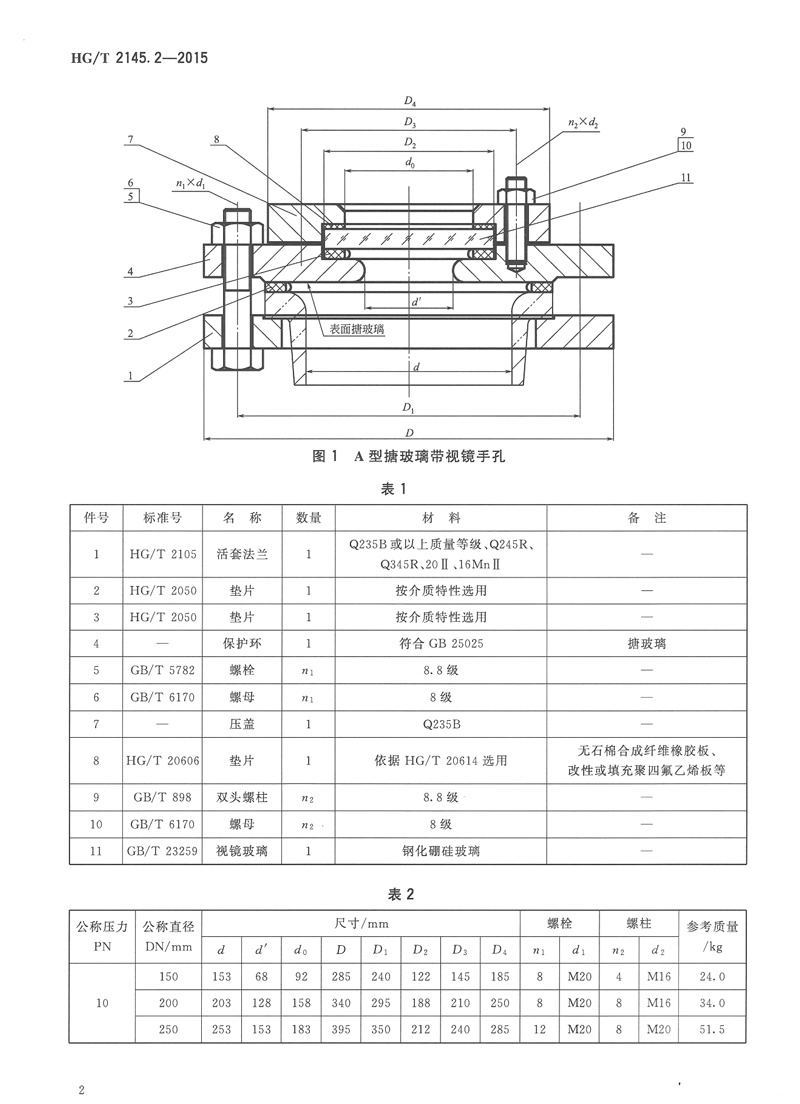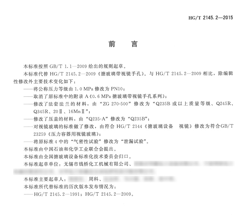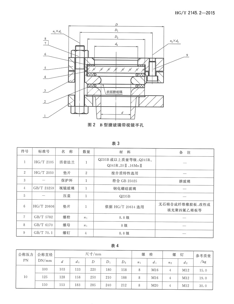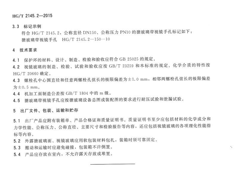HG/T 2145.2-2015搪玻璃帶視鏡手孔化工行業標準簡介和下載