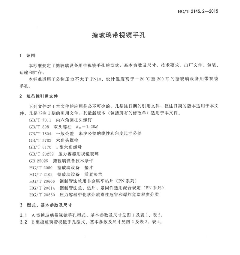 中華人民共和國化工行業標準HG/T 2145.2-2015搪玻璃帶視鏡手孔 點擊下載搪玻璃帶視鏡手孔行業標準